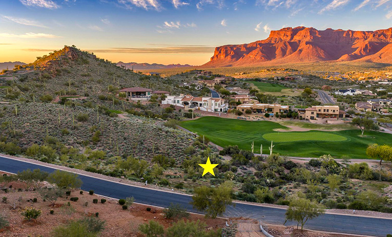 - Hillside lot offers unobstructed views of the 5th green & the entire Superstition Mountain range