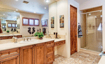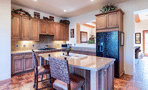 - KitchenAid appliances, gas stove, kitchen island, breakfast bar, granite counters, double walk-in pantries, double convection ovens, plantation shutters, gas fireplace